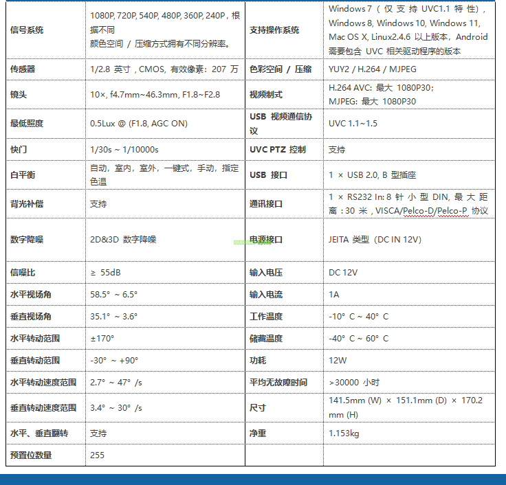 采用 4K UHD CMOS 图像传感器,搭配 12x 超长焦镜头,会议室远近位置皆能清晰拍摄,画质出色;提供全功能 USB 接口,可无缝对接笔记本、