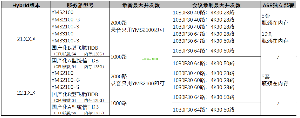 (3) 结果说明 注:以下举例1080P 及以下会议录制转码资源;结果为理论值,内部均以 YMS 实体机压测,虚拟机的真实数据需要压测进一步确认实际情况