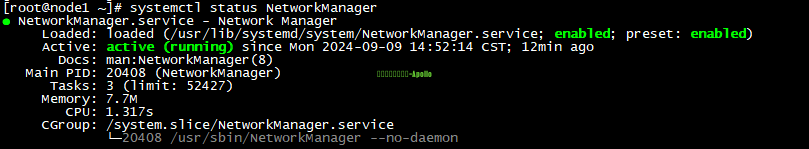 注:若正在运行,切NetworkManger服务需要被设置为开机启动,可以看到类似下面的输出