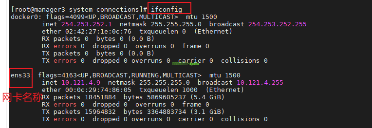 4、关闭IPV6相关配置①查询网卡名称方式,先输入ifconfig