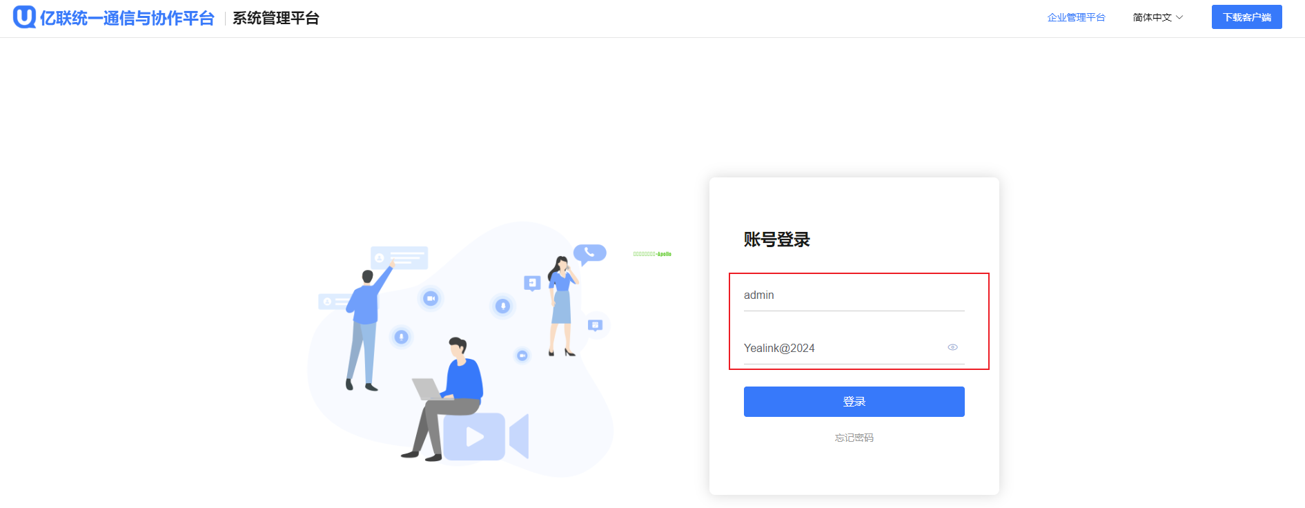 4、通过找回的密码登录系统管理平台/企业管理平台