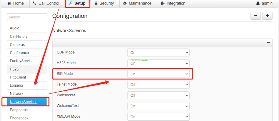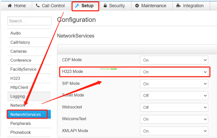 H.323注册方式: (1)开启H323模式 Setup-configuration-networkservices-H323 Mode设置on开启