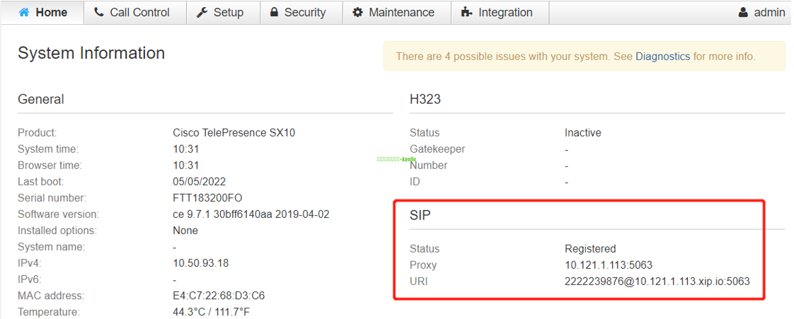 (3)查看SIP注册状态 提交后首页会提示注册上