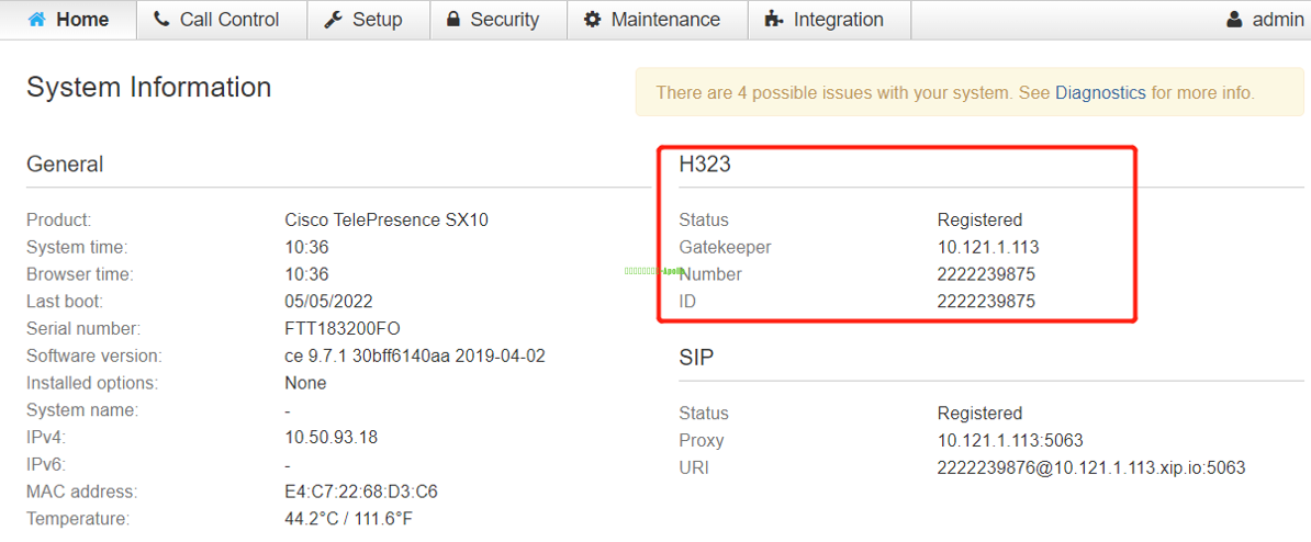 (3)查看H.323注册状态