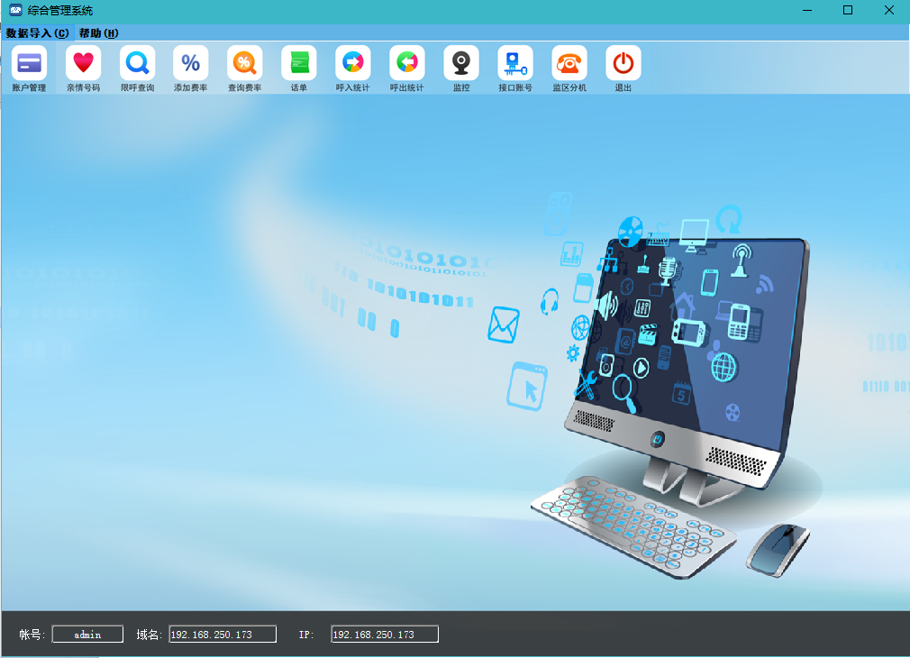 2 系统架构系统依托监狱专用电话网络和计算机网络,采用分布式构架部署。核心交换平台设备与亲情电话管理系统部署在中心机房并接入运营商外线。每个监区和监控区分别部署高保真IP话机。亲情电话拨打由亲情电话管理系统进行统一控制,保证所有服刑人员的通话都是受控的。同时管理人员、监控狱警可以通过监控客户端对亲情电话进行实时监控、查询亲情电话记录等工作。系统程序采用C/S网络架构,完全人性化设计,操作简单,使用灵活。 图2-1 网络拓扑图(如下图供参考) 图2-2 界面展示 图2-3 界面展示 3 |