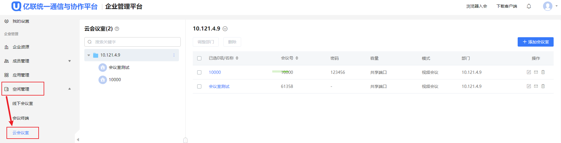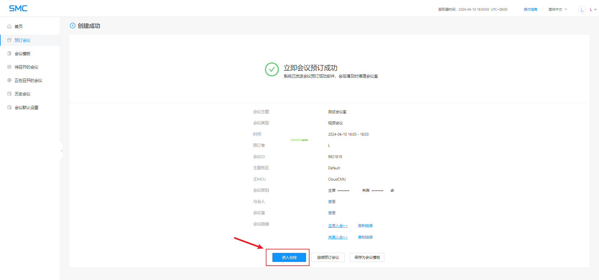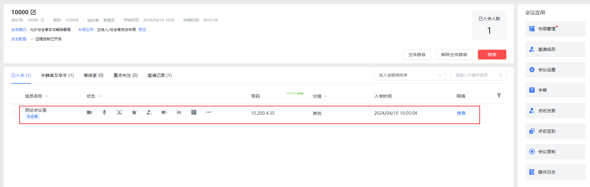| 1、此章节的配置需要先完成UC上的服务配置:SIP/H.323 IP呼叫服务、会议/协作适配器、媒体转发服务、媒体网关服务、媒体穿透服务; 2、会议室添加请参考添加云会议室 这里不再重复说明; 3、UC与SMC3.0环境信息如下: 操作步骤SMC邀请UC入会1、在UC4X上创建云会议室企业管理平台-空间管理-云会议室-添加会议室 2、在SMC3.0上创建会议可以从预定会议中直接创建临时会议室;也可以从会议模板-新建模板中创建固定会议室 点击完成,然后点击进入会控 3、确认UC会议进入SMC会议中UC侧也可以看到SMC UC邀请SMC入会1、进入UC会控界面,点击邀请成员2、输入SMC会议进行呼叫 |